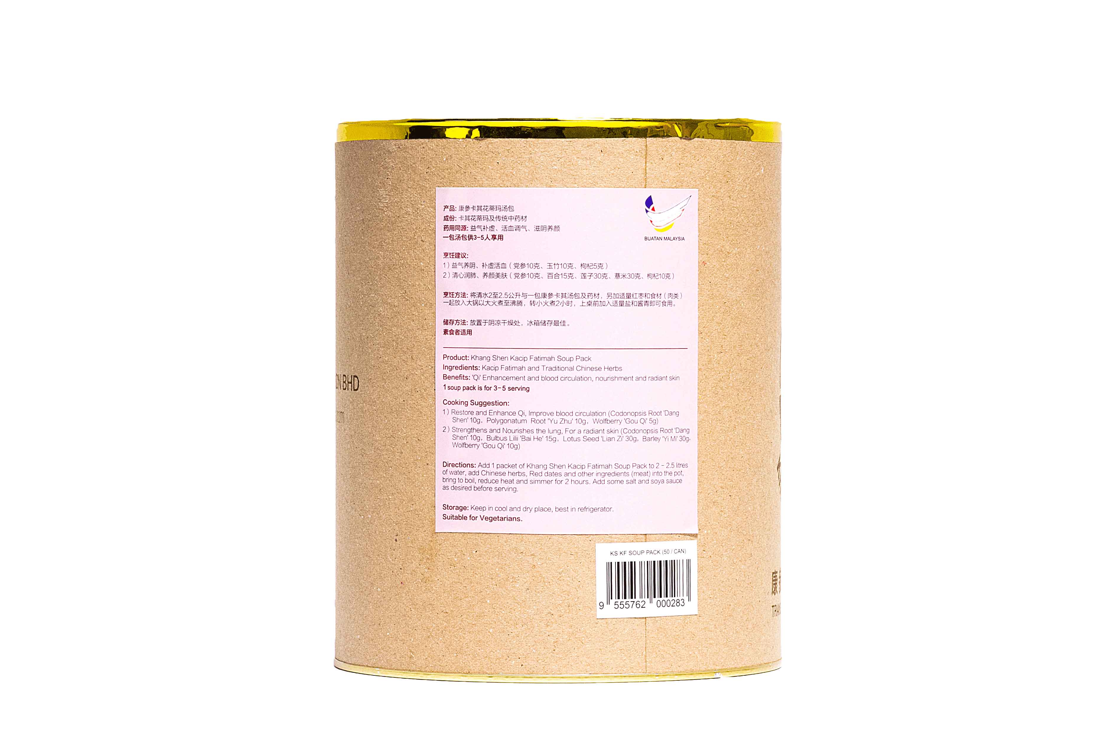 * Kacip Fatimah Soup Packs are made strictly according to production process using high-technology equipment in processing and sterilization to retain Kacip Fatimah’s active ingredients so that human body can digest and absorb completely