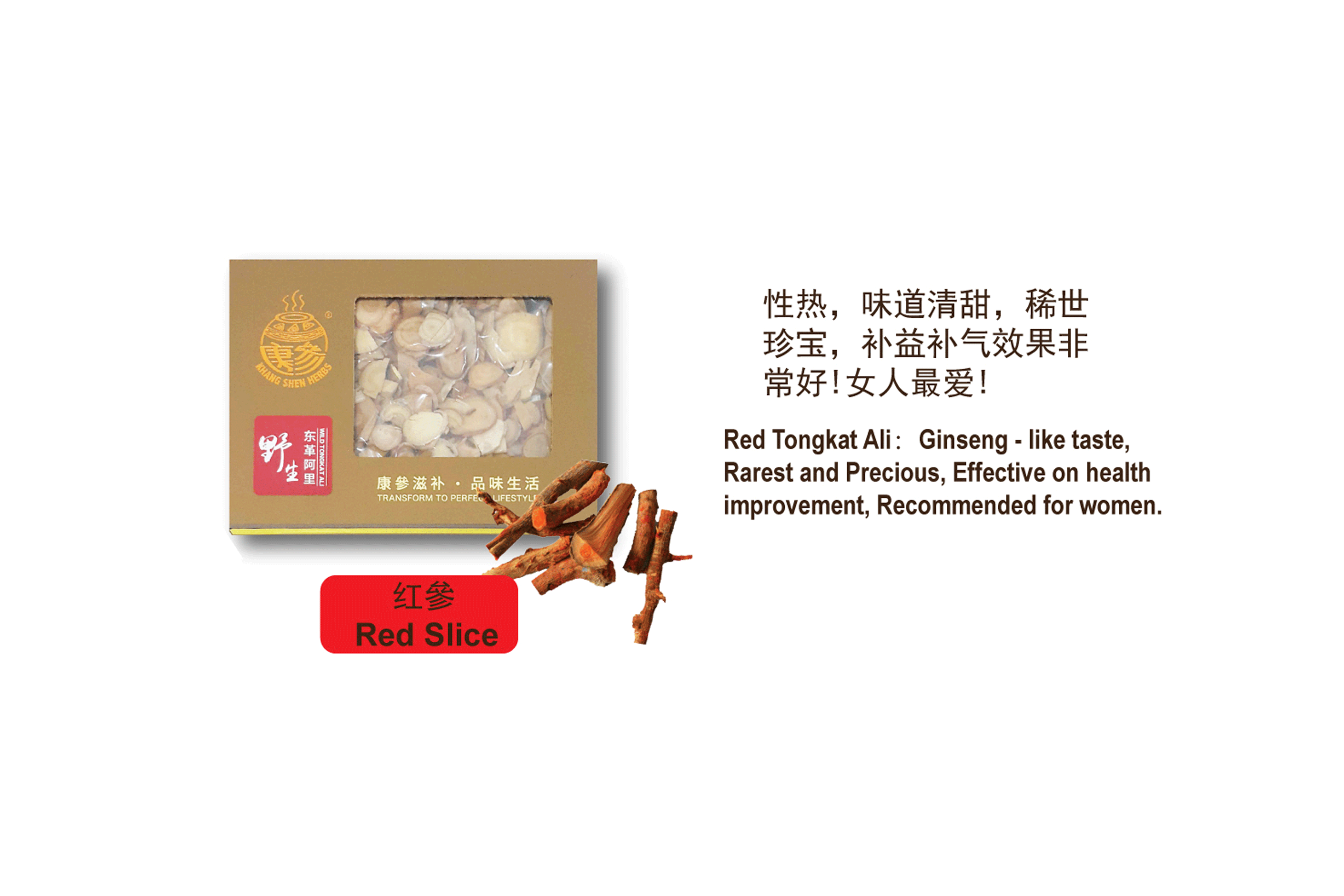 * Tongkat Ali Slices (Red) are made strictly according to production process using high-technology equipment in processing and sterilization to retain Tongkat Ali’s active ingredients so that human body can digest and absorb completely